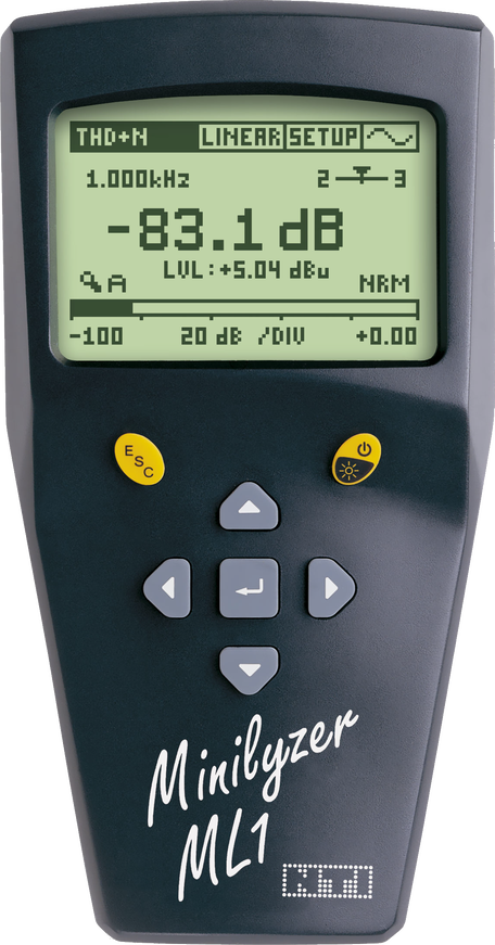 Kädessä pidettävä sarja äänentasomittareita, äänigeneraattoreita ja audioanalysaattoreita mm. seuraaviin käyttötarkoituksiin:
